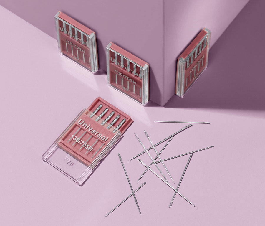 - 20 lapos fejű varrógéptű 130R/705H: 5x univerzális 70, 5x univerzális 80, 5x univerzális 90, 5x univerzális 100