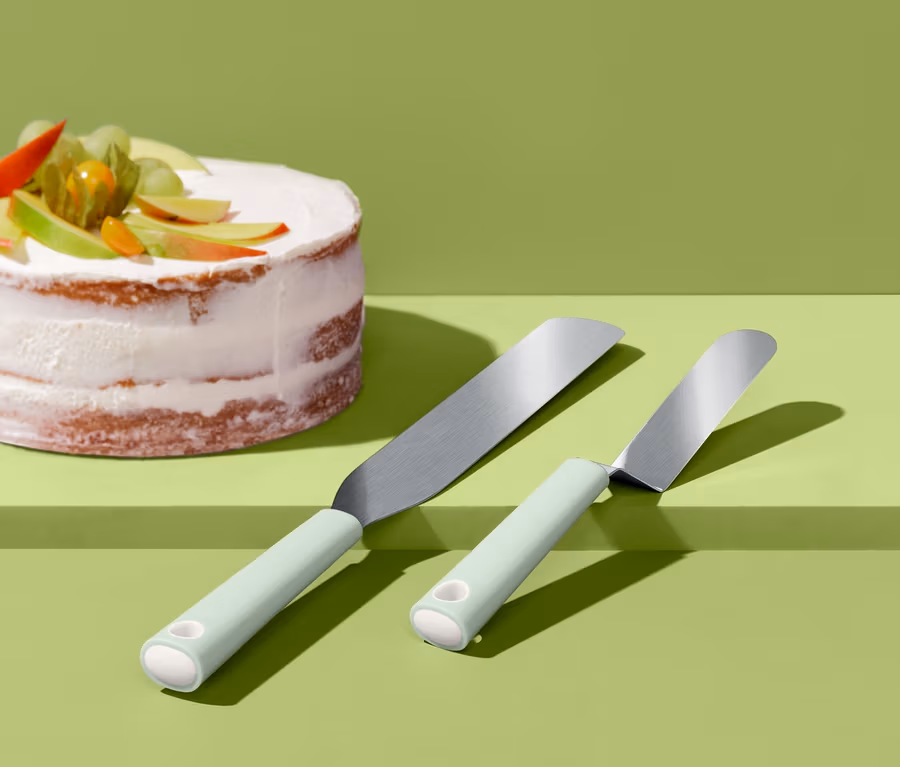 Sütéskor fontos szerep jut a precizitásnak - az előkészítéstől a végső simításokig. Ennek a két spatulának köszönhetően pedig éppen a megfelelő eszközöket tarthatja a kezében, ha torták és sütemények kidíszítése vagy rétegezése a feladat: vajkrém vagy tejszín, túrókrém vagy cukormáz: a nagy spatulával különösen egyenletes lehet az eredmény, a kicsi, hajlított spatula pedig kiválóan alkalmas kekszek, cupcake-ek vagy hasonló nyalánkságok kidíszítéséhez. Mindkét konyhai segédeszköz olyan ergonomikusan formázott markolattal rendelkezik, amelyet akasztókarikával láttak el.