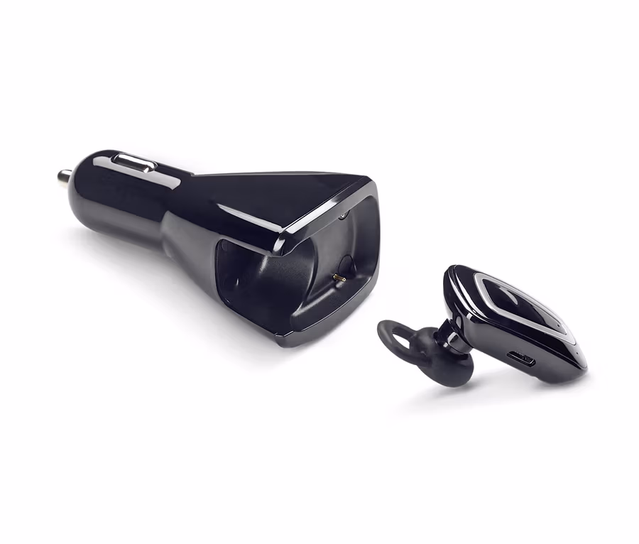 Használója vezetés közben is mindig elérhető – ennek a töltőállomással ellátott autós headset-kihangosítónak köszönhetően a kormánynál ülve is kényelmesen és biztonságosan telefonálhat. A Bluetooth® funkciós headsetből és USB-töltőállomásból álló 2 az 1-ben megoldás 12 és 24 V-os csatlakozókhoz illik, valamint 3,1 A töltőárammal működő két USB-csatlakozóval rendelkezik - tökéletesen alkalmasak arra, hogy utazás közben töltsék fel például az okostelefont vagy a táblagépet.