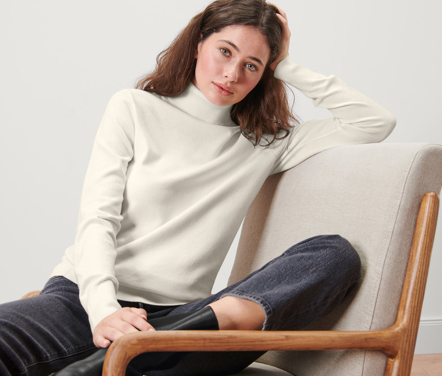 • Ez a garbónyakú pulóver fenntartható fából származó szálakat tartalmaz.