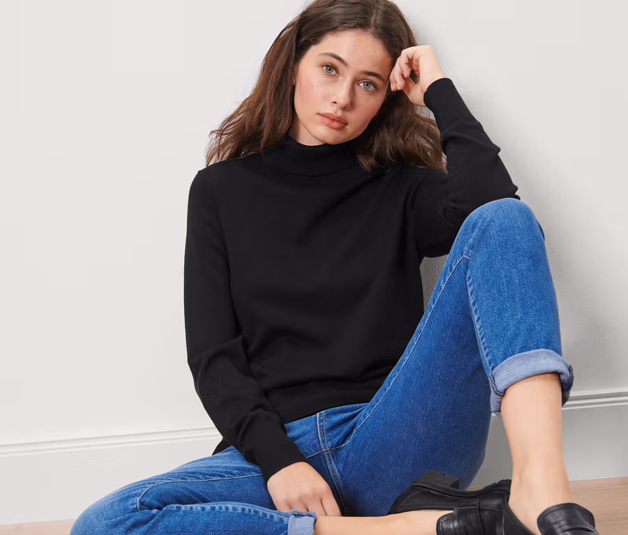 - Ez a garbónyakú pulóver fenntartható fából származó szálakat tartalmaz.