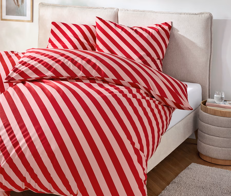 Perkál ágynemű, csíkos, bordó/rózsaszín, egyszemélyes