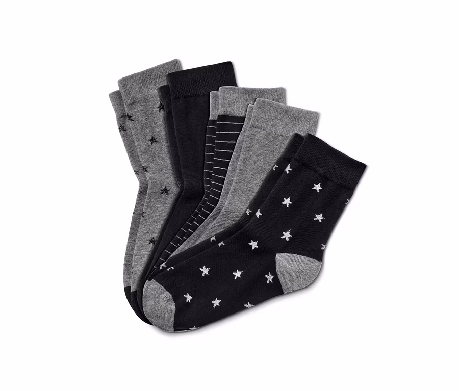 5 pár női zokni, csillagos, szürke/fekete