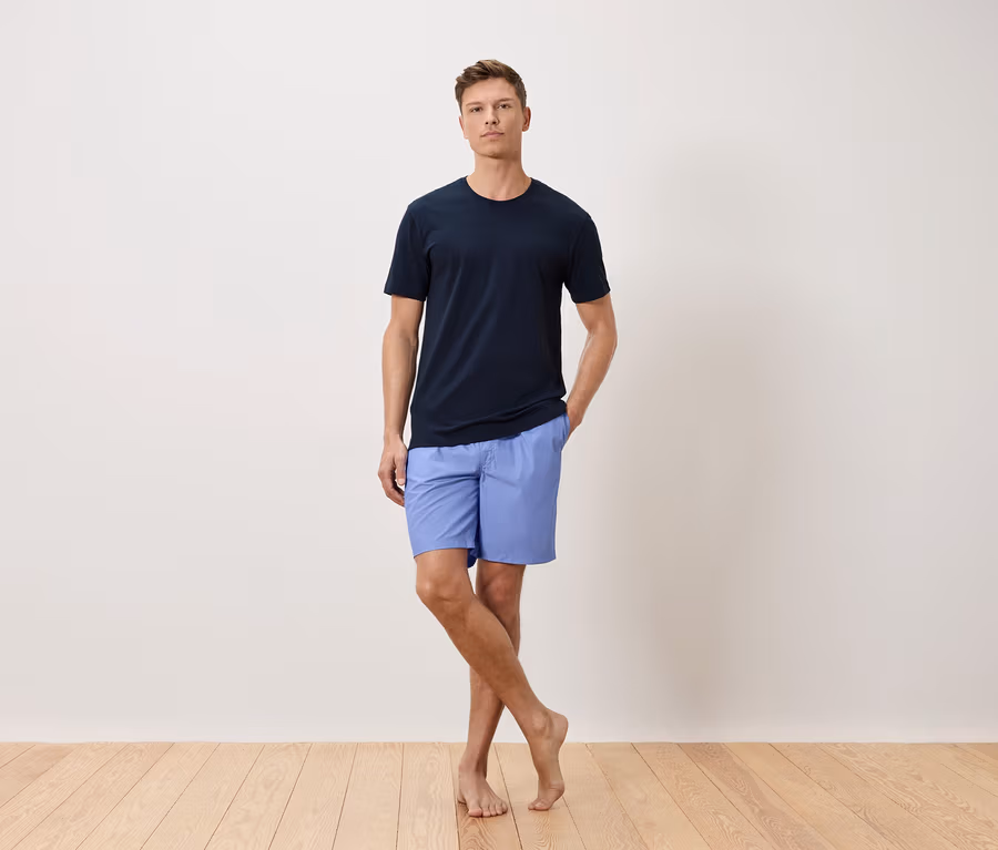 Férfi rövidnadrágos pizsama, szövött, kék
