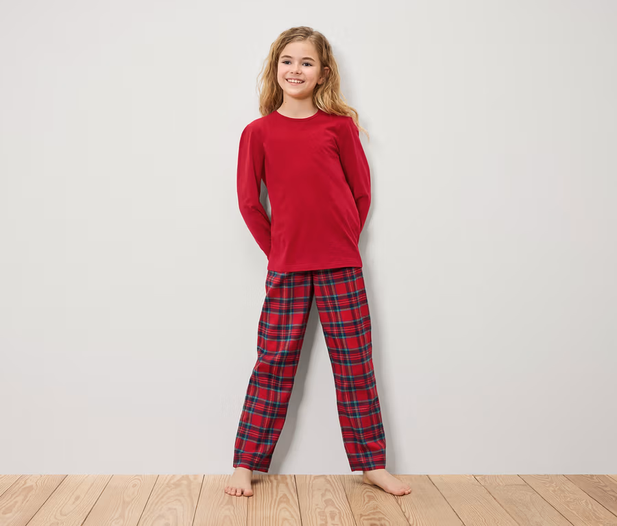 - Felsőrész: piros. Nadrág: többszínű kockás mintával