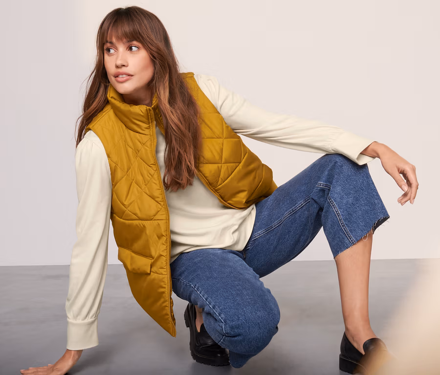 - Mondern színárnyalatú, enyhén bélelt steppelt mellény