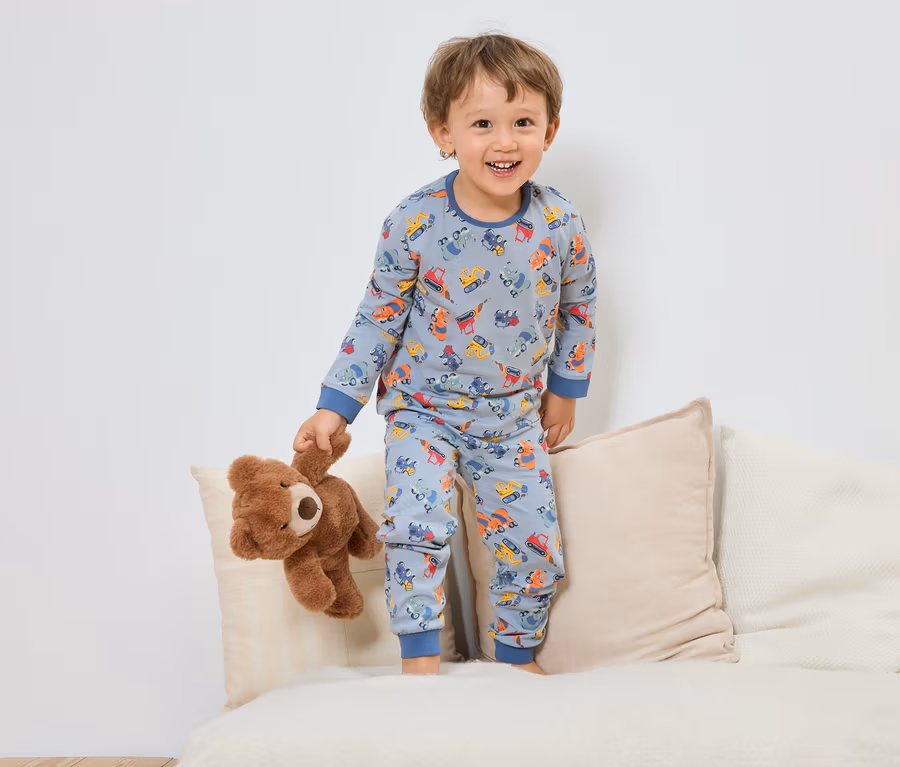 - 1x világoskék felsőrész és nadrág, autós mintával