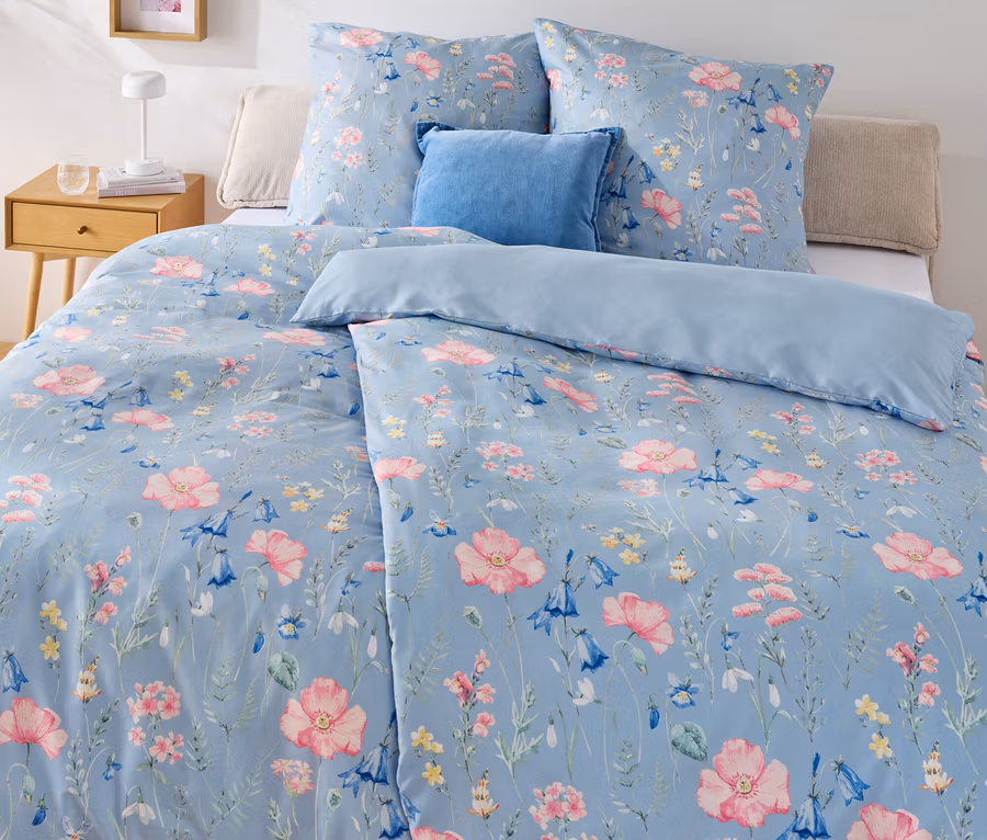 Kétoldalas mikroszálas ágynemű, virágos, világoskék, egyszemélyes
