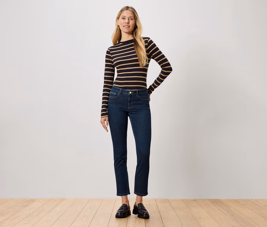 - Regular Fit | egyenes szabás | közepesen magasra szabott derék | bokáig érő hossz