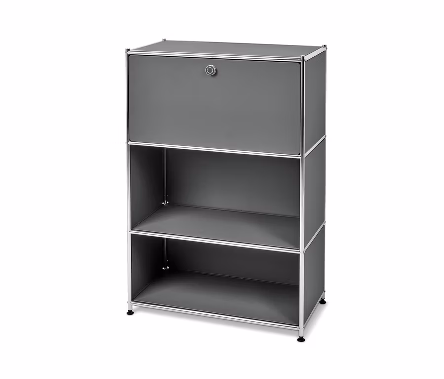 Irodai szekrény, fém, lenyitható asztal, szürke