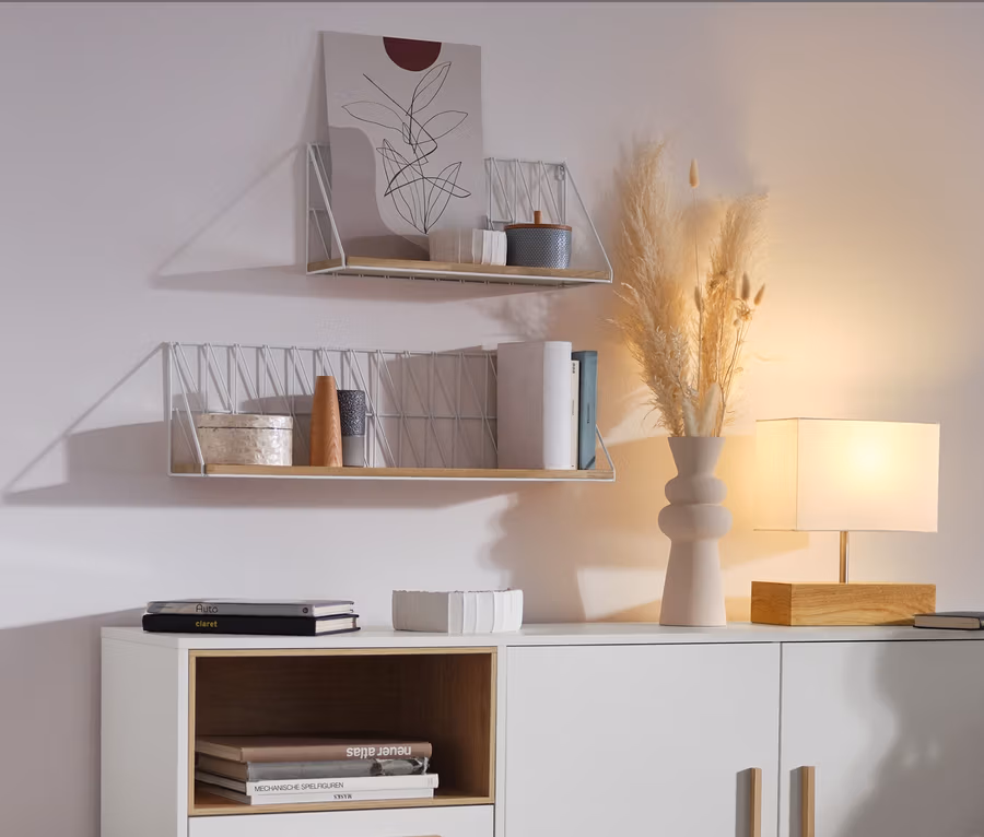 - Váz, fogantyúk és behelyezhető polclapok: natúrszínű tölgy