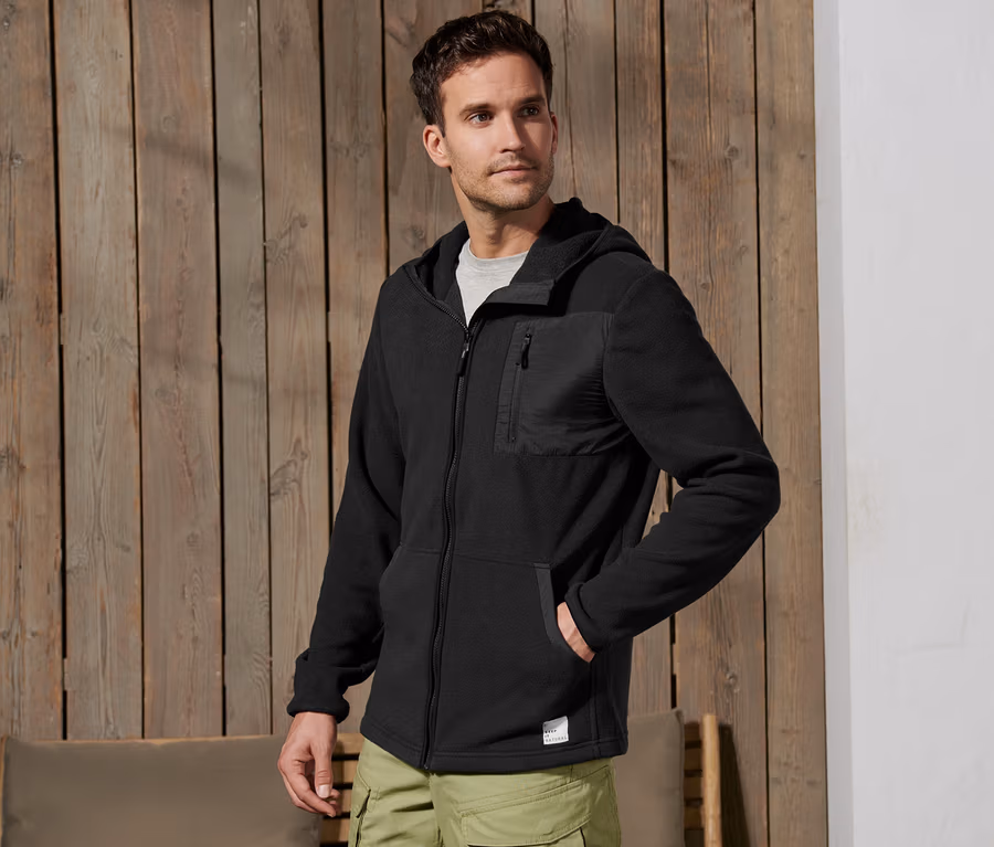 Férfi kapucnis polárfelső, fekete