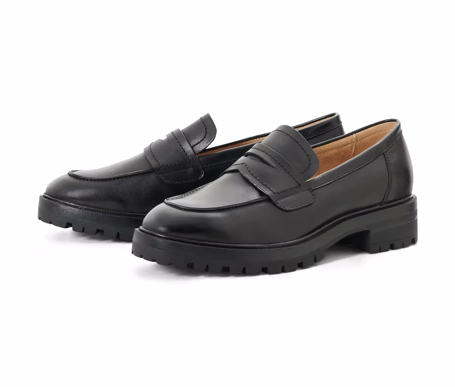 Női bőr mokaszin, fekete