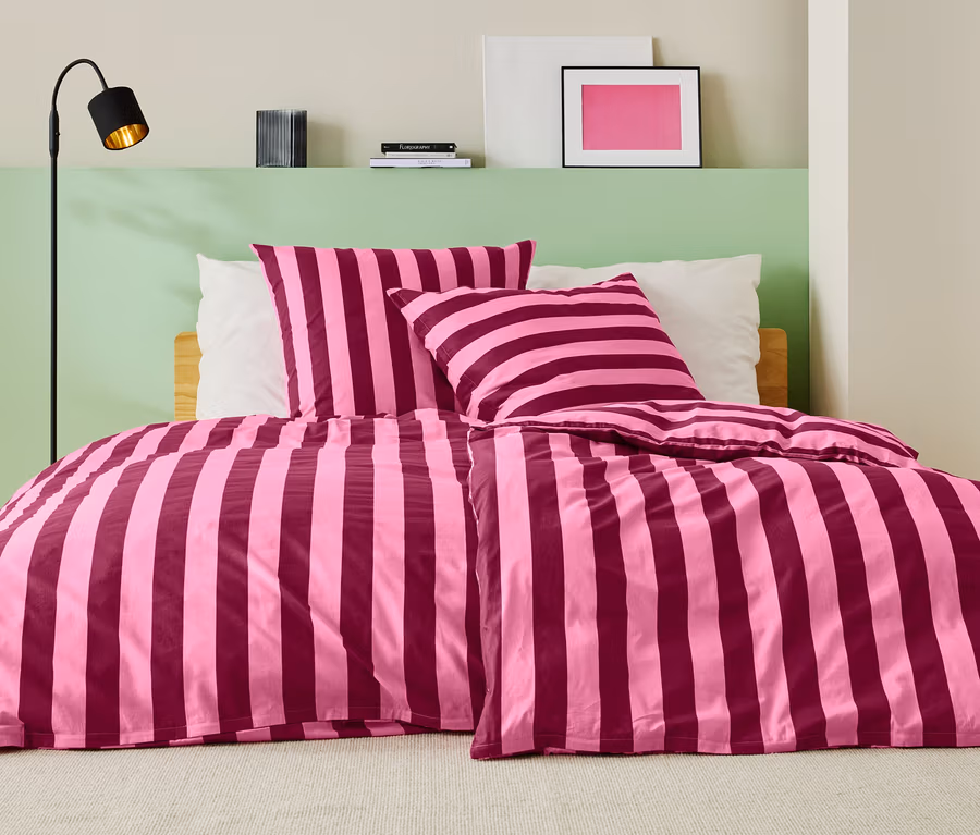 Perkál ágynemű, csíkos, bordó/pink, egyszemélyes