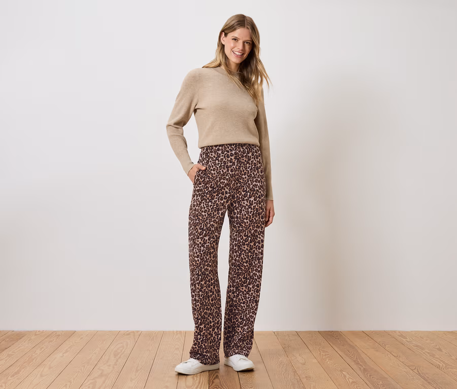 Női jerseynadrág, leopárdmintás