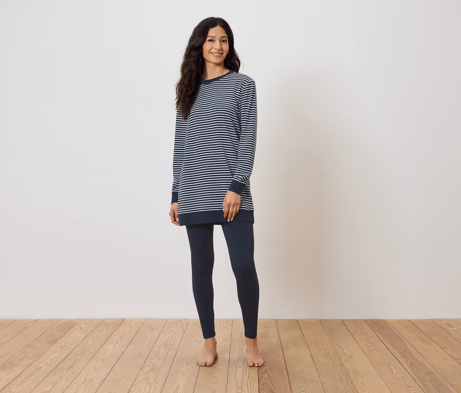 Női pizsama, leggingsszel, csíkos, sötétkék