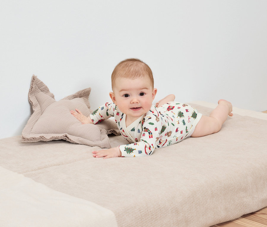 - Az 50/56 – 62/68-as méretek átlapolós fazonnal: az oldalt és a lépésközben található patentgombokkal teljesen szétnyithatók