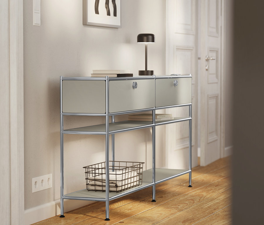 »CN3 Slim Line« fém konzolasztal 2 fiókkal, világosszürke