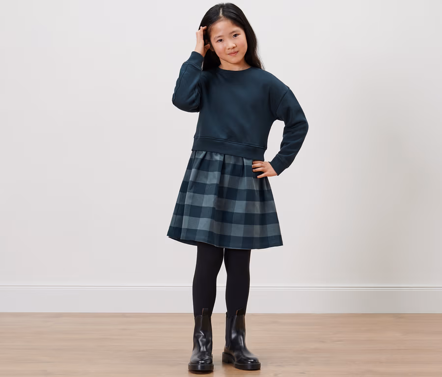 Lány lezser ruha, kockás, sötétkék