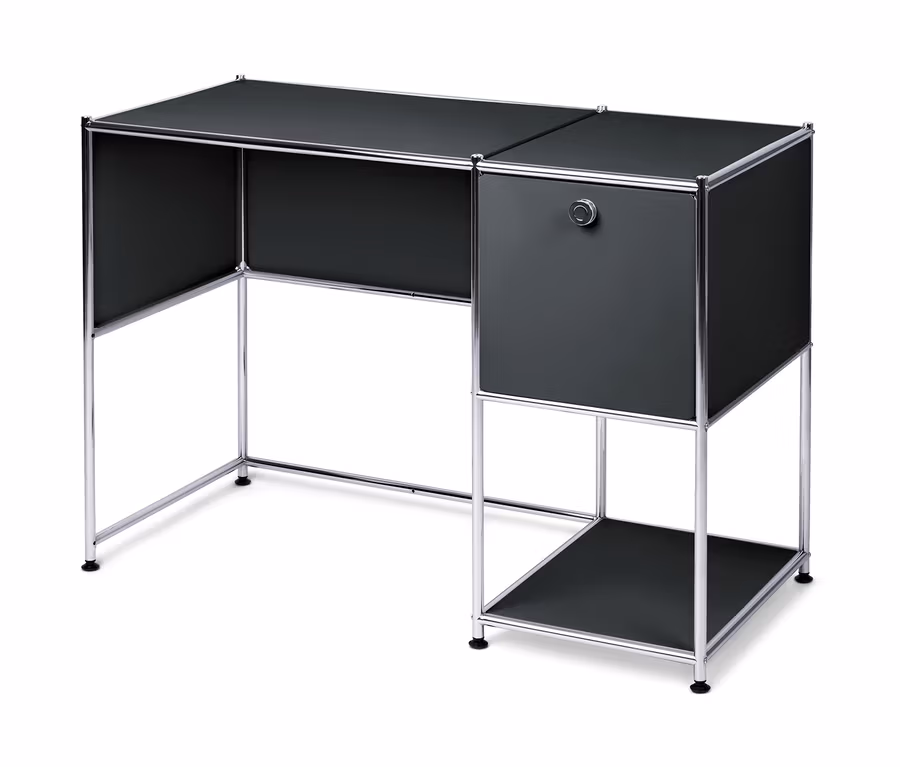 • Íróasztal krómozott fémvázzal és gombfogantyúval