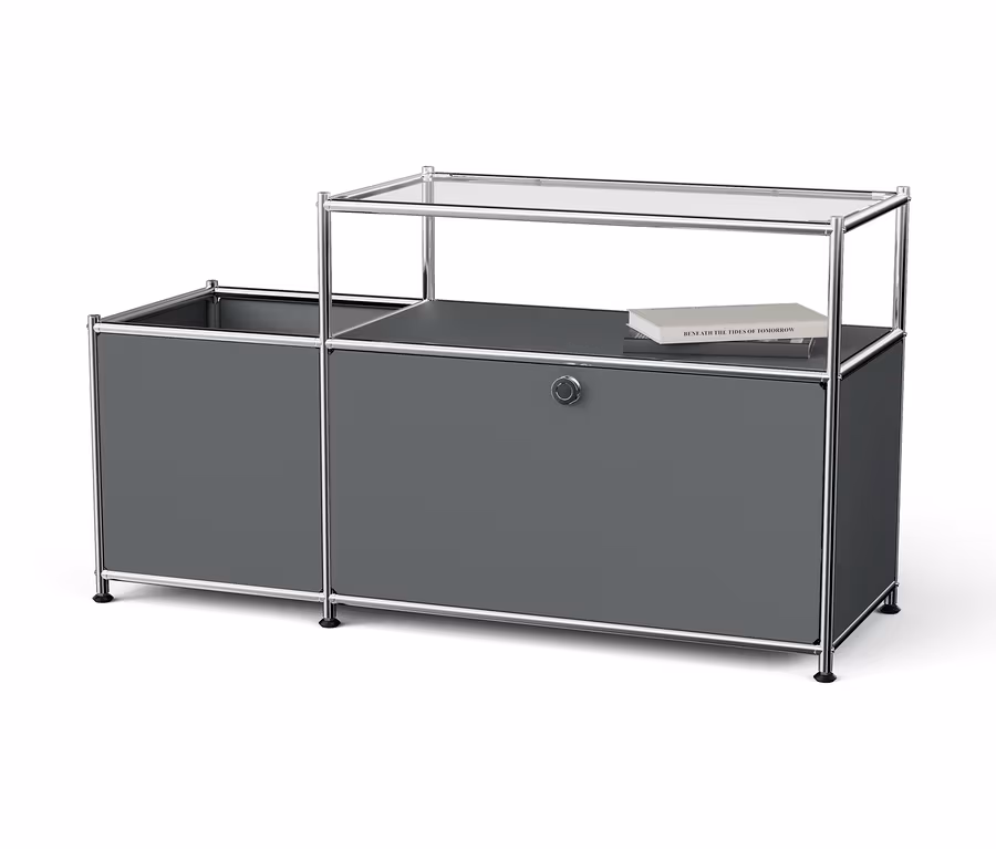 »CN3« fém alacsony szekrény lenyíló ajtóval és üveglappal, szürke