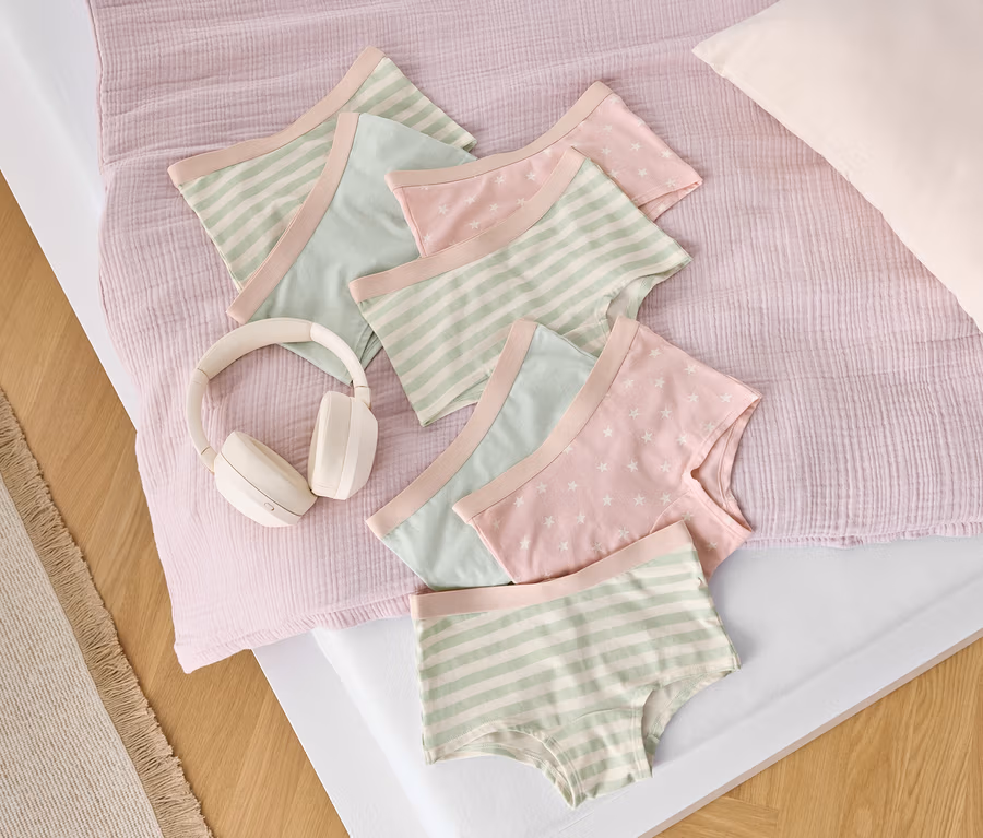 - 2x pasztell rózsaszín fehér csillagokkal, 3x mentazöld, 2x fehér-mentazöld csíkos