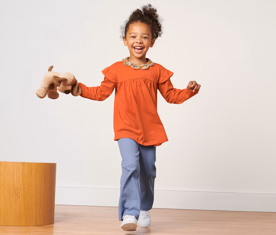 Kislány hosszúujjú felső, fodros, nararancs