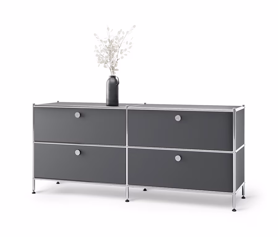 »CN3« alacsony fém komód 4 fiókkal, szürke
