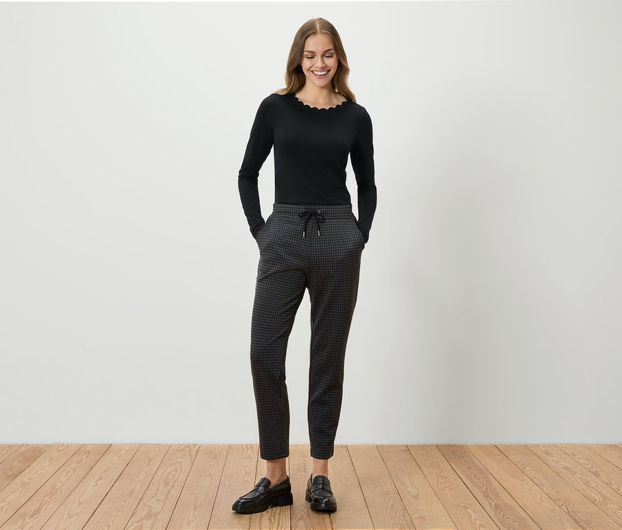 Női hosszú ujjú felső, hullámos nyakú, fekete