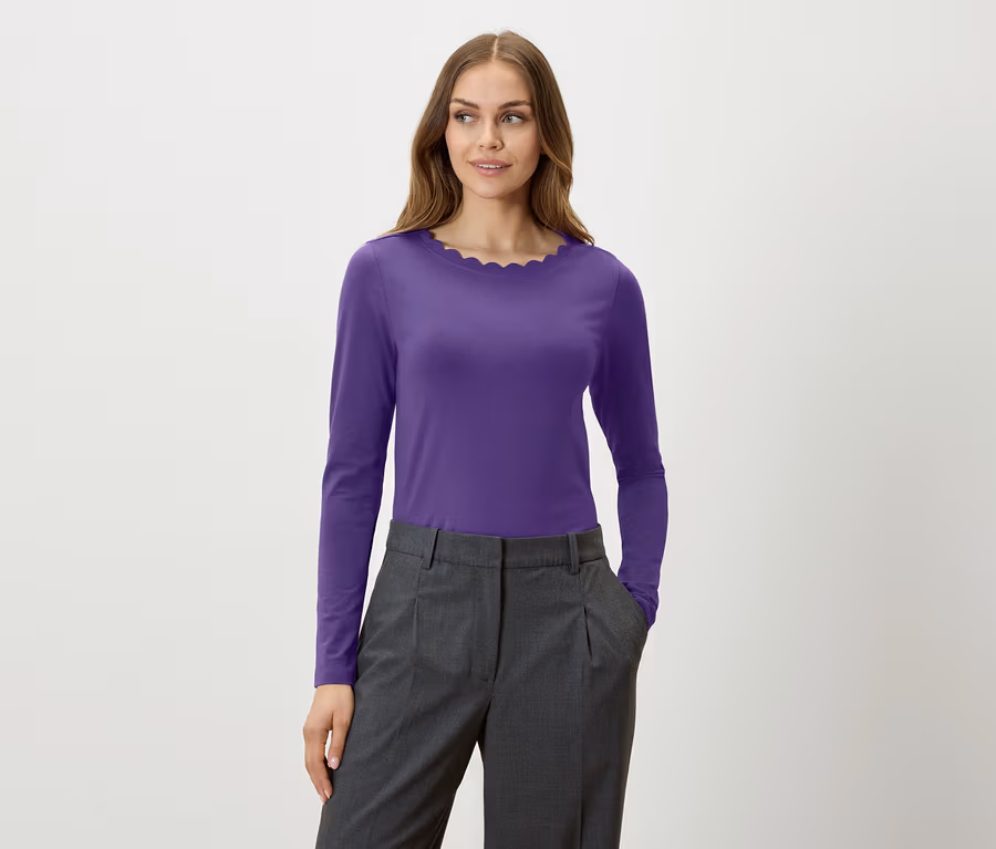 Női hosszú ujjú felső, hullámos nyakú, lila