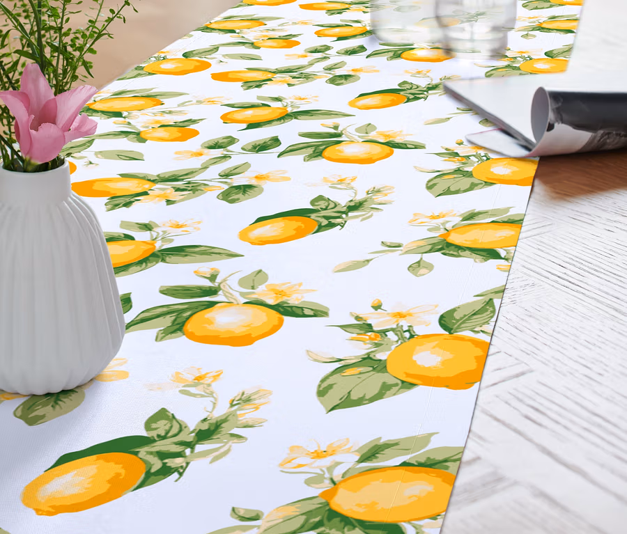 - Fehér színes nyomott citromos mintával a teljes felületen