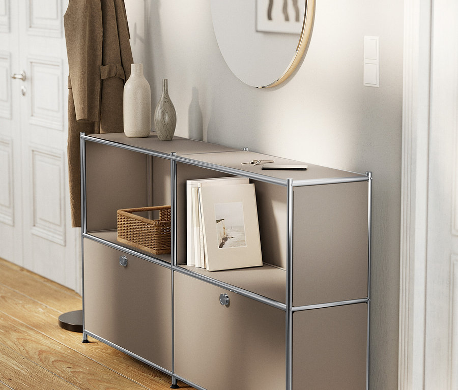 »CN3 Slim Line« fém szekrény, 2 áthelyezhető lenyíló ajtós rekesszel, szürkésbarna