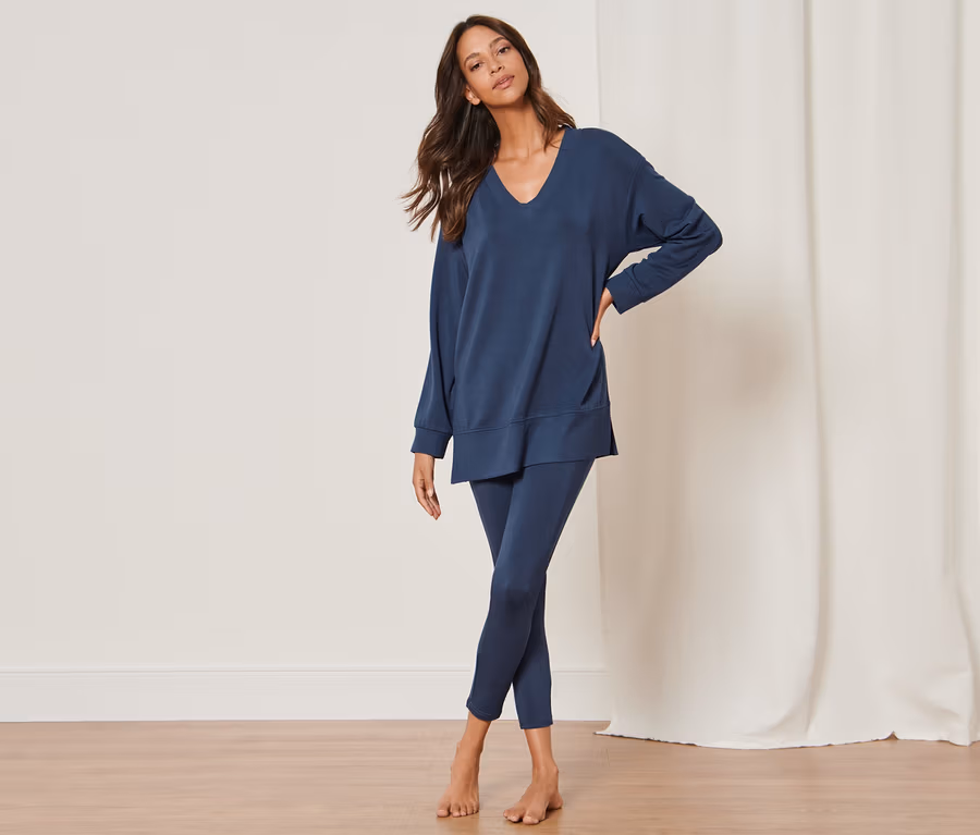 • Ez a pizsama fenntartható fából származó szálakat tartalmaz.