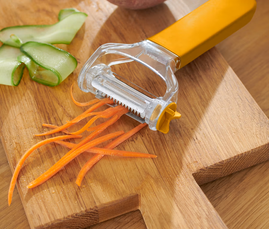 - Julienne-vágó – pl. cukkiniból, répából stb. készülő egyenletes, vékony zöldségcsíkokhoz