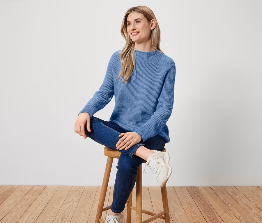 Női magas nyakú pulóver, világoskék