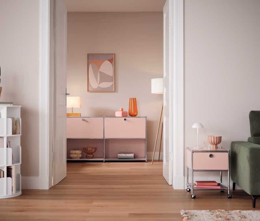 »CN3« fém komód 2 áthelyezhető lenyíló ajtóval, fáradtrózsaszín