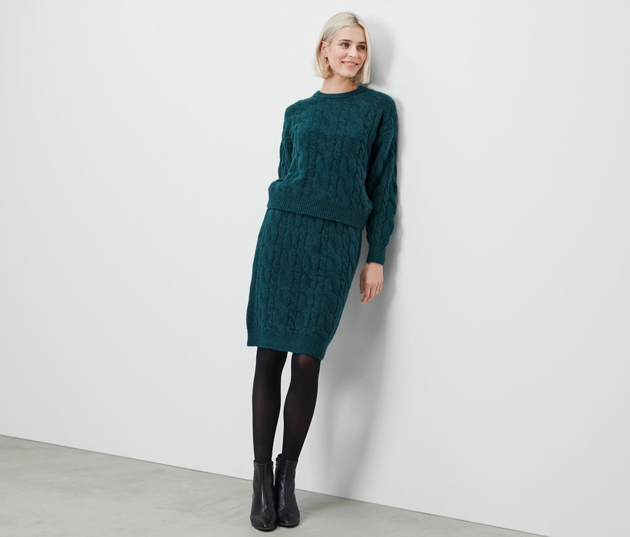 Női kötött szoknya, petrolzöld