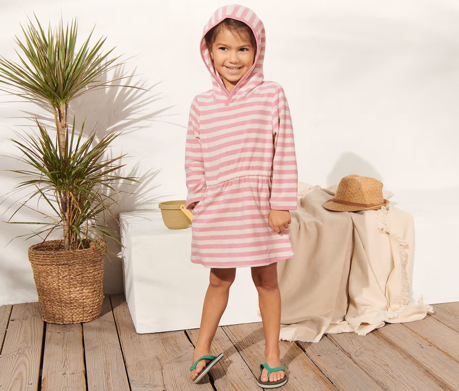 Lány kapucnis frottírruha, csíkos
