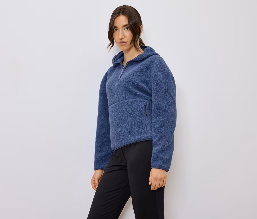Női kapucnis plüssfelső, kék
