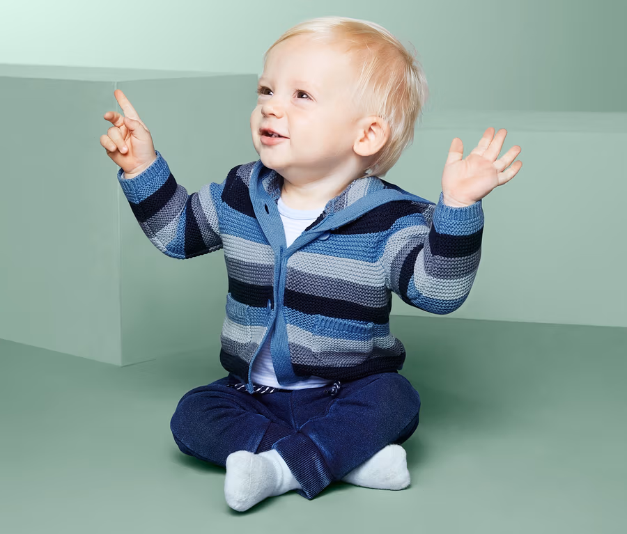 Csodálatosan puha és ugyanilyen csinos – ebben a kötött kardigánban tündérien mutatnak a kicsik. A kisgyerekeknek készült kardigán tiszta, bőrbarát pamutból készült, meleg kapucnival és két elülső zsebbel rendelkezik. Különösen kényelmes - ennek ellenére akkor is felvehető, ha elegánsabb szettre van szükség.