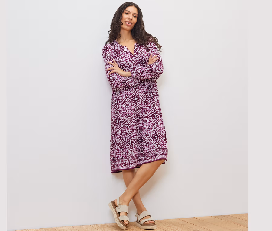 Női szövött ruha, kreppelt, mintás, fukszia