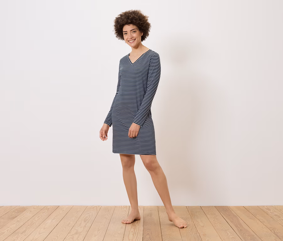 Női hálóing, csíkos, sötétkék