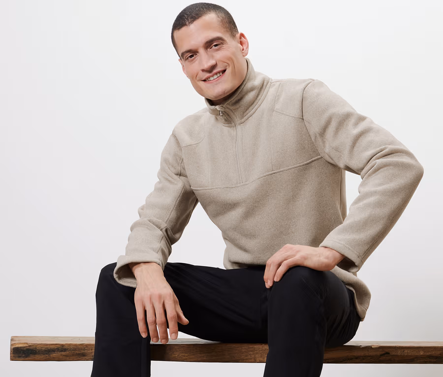 Férfi kötött polárpulóver, melírozott, bézs