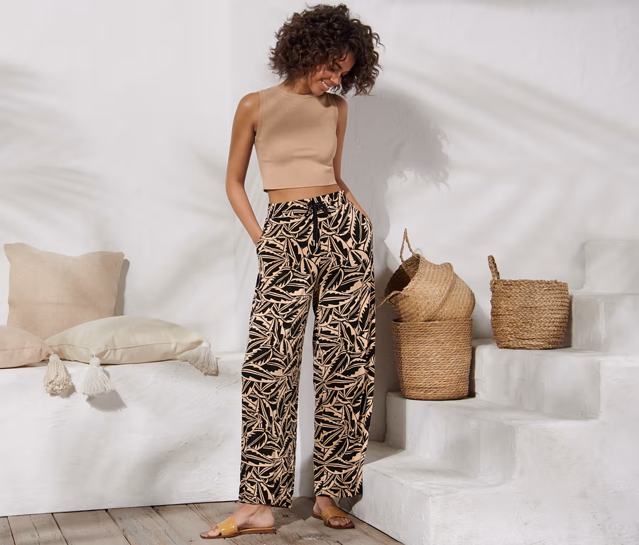 - A teljes ruhán pálmaleves nyomott mintával