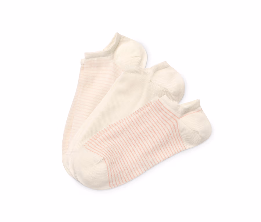 3 pár női bokazokni szettben, csíkos, krém