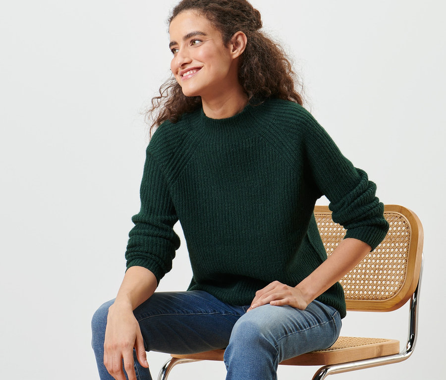 - Rugalmas, bordás kötésű szegély az állógallérnál, az ujjvégen és az alsó szegélyen
