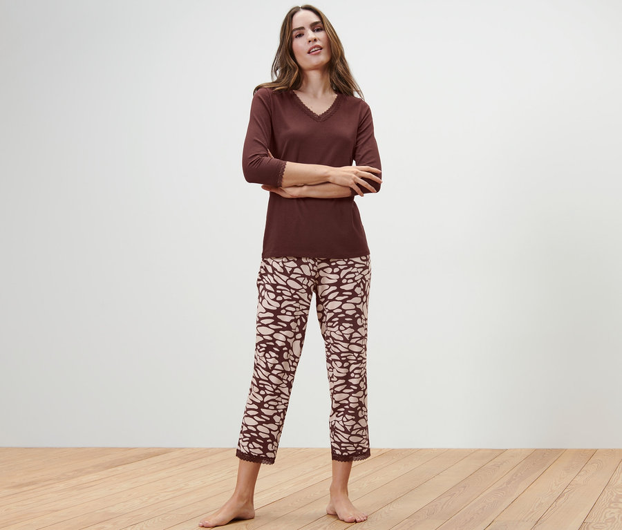 Női 7/8-os pizsama, mintás/barna