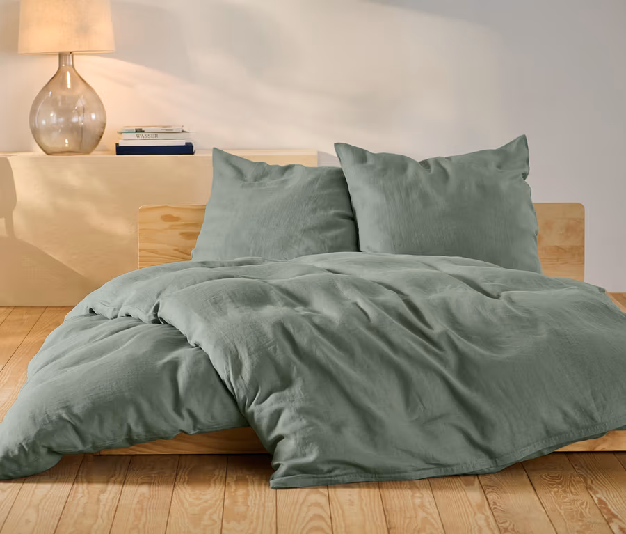 Lenvászon ágynemű, zöld, egyszemélyes
