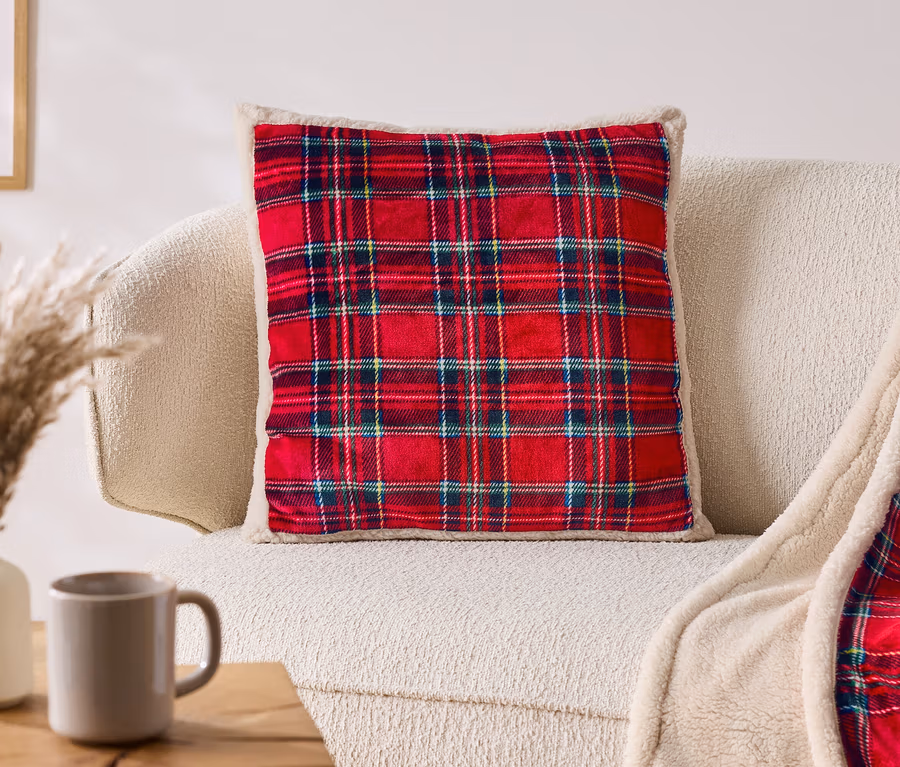 Kockás plüss díszpárna