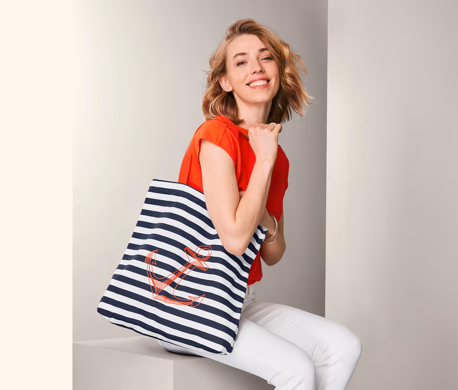 Akár a tengerhez, vásárolni vagy strandra indul - ennek a tiszta biopamutból álló nyári, tengerész stílusú táskának köszönhetően máris tervezheti a következő kirándulást. Az elöl ráhelyezett, kontrasztszínű horgonymintával díszített csíkos kialakítás egyből a tengert juttatja eszünkbe. A nagyméretű főrekesz patentgombbal zárható, a kiegészítő belső zseb pedig helyet biztosít a kisebb holmik számára.